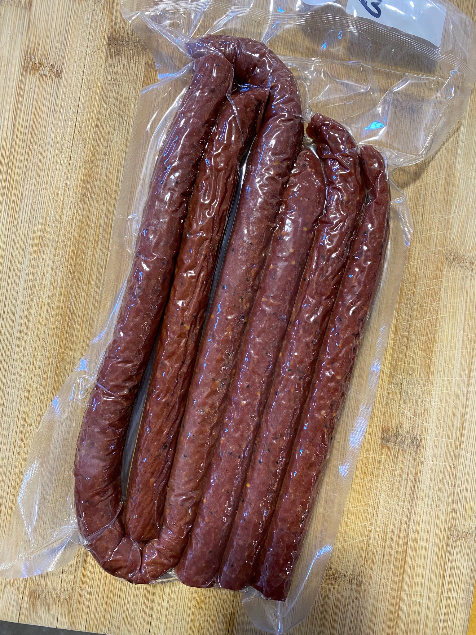100% grass finished bison from primal cuts, artisan seasoning, neutral collagen casing, cure.